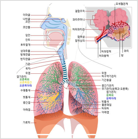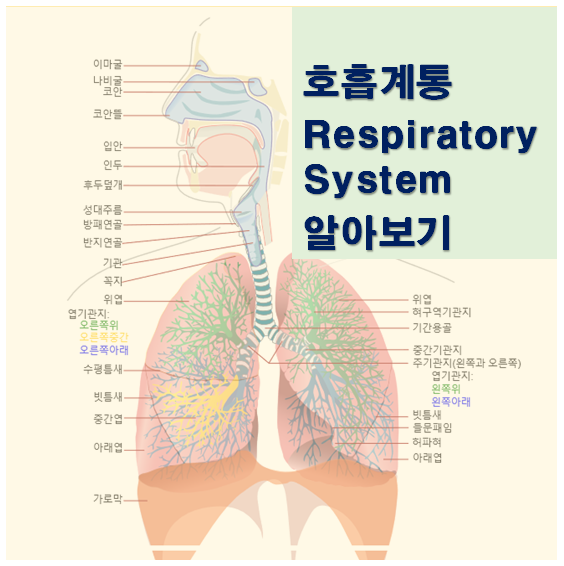 '셀프주치의'가 되어봅시다. 우리가 보통 의학용어에 익숙하지 않지만 알아두면 좋은 점이 많습니다. 무엇보다 의사선생님들만 알면 된다는 생각은 버리고 우리도 우리의 소중한 신체에 대해 조금이나마 지식을 갖춰보는 것, 그리 어렵지 않습니다. 오늘의 주제, 우리 몸의 호흡계통은 영어단어로 Respiratory system 입니다. 우리 신체의 어떤 부분도 그 역할이 갖지 않은 것이 없습니다만, 그 중 호흡계통은 에너지를 생성하기 위한 첫 단추로서의 역할을 수행합니다.