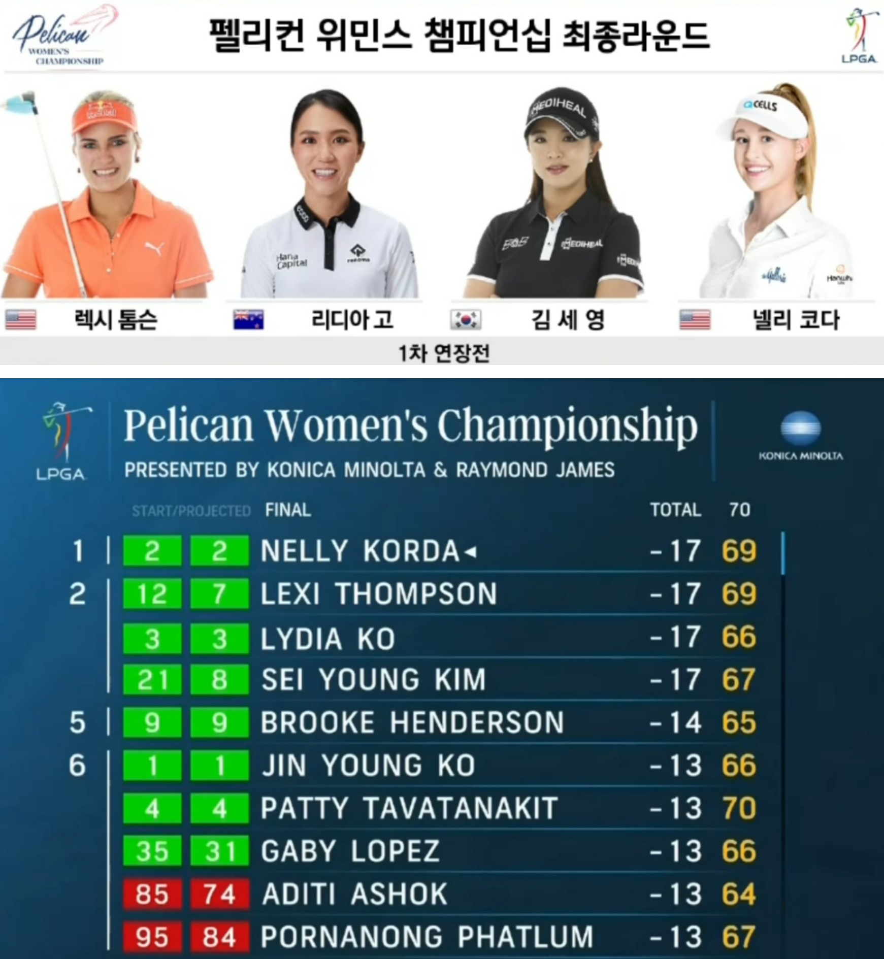 ▣ 펠리컨 위민스 챔피언십 순위 및 결과