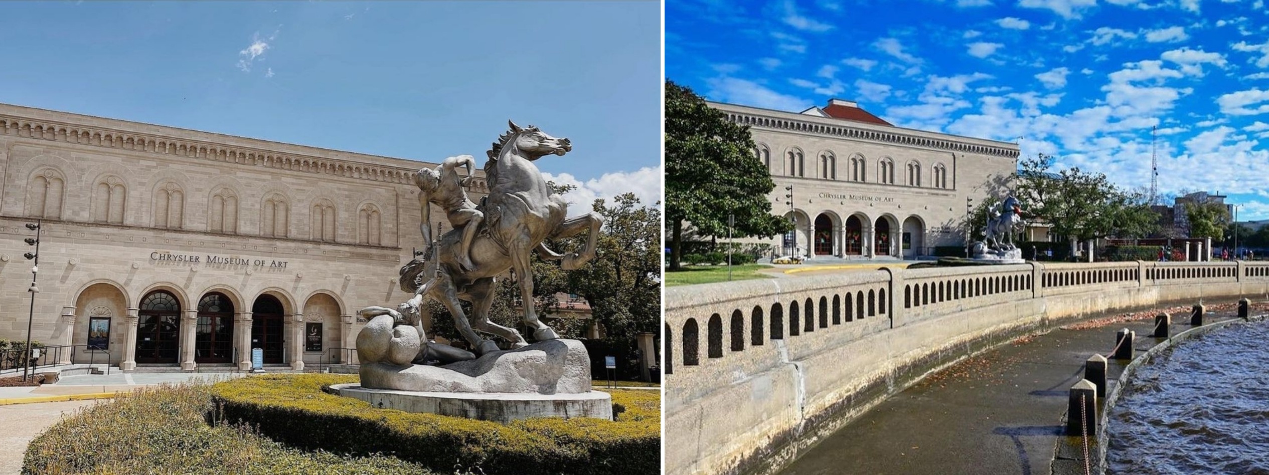 Norfolk Naval Station(노퍽 해군 기지)의 버스 투어에 오르면 1907년 미국 제임스타운 세계박람회를 위해 지어진 건물과 미국 대서양 및 인도양 함대의 본거지에 정박한 선박을 지나치게 된다. MacArthur Memorial Museum(맥아더 기념관)은 더글라스 맥아더 장군과 세계 대전, 한국전쟁에 참전한 사람들을 기리는 곳이다.