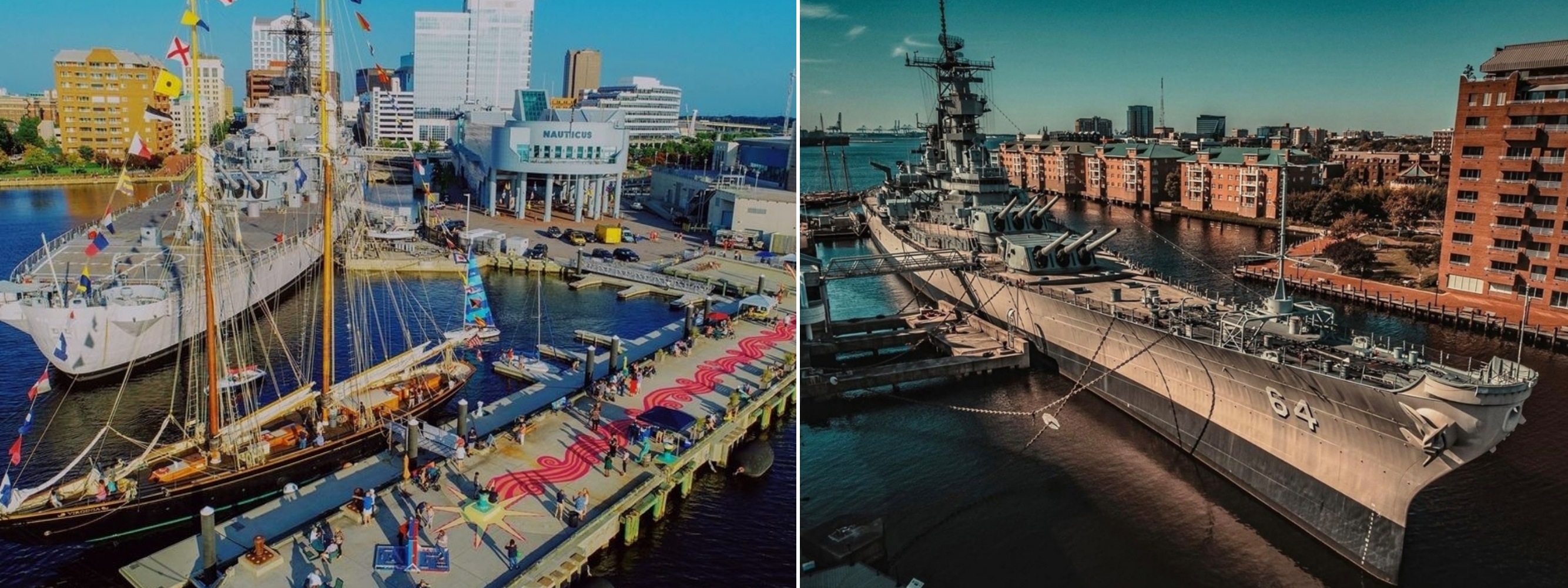 노퍽의 노티쿠스(Nauticus)는 수족관, 탱크, 해군 전시관과 역대 건조된 가장 큰 전함 중 하나인 U.S.S. Wisconsin을 포함하고 있는 해양테마 박물관이자 과학센터이다. 이곳은 또한 현역 잠수함, 항공모함 및 유도 미사일 구축함을 볼 수 있는 2시간 여정의 항구 크루즈 여행의 출발지이기도 하다.