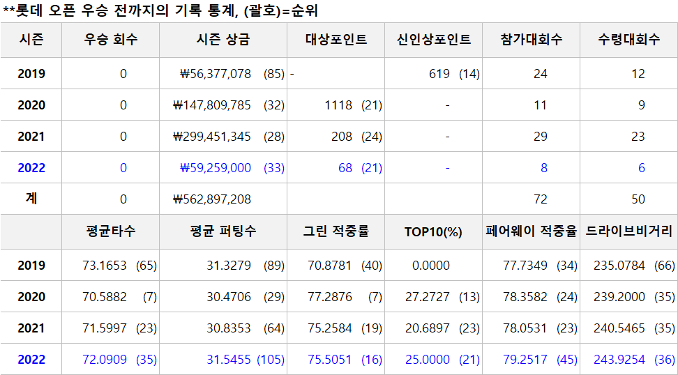 ·2022 6월 롯데 오픈 1위(우승)