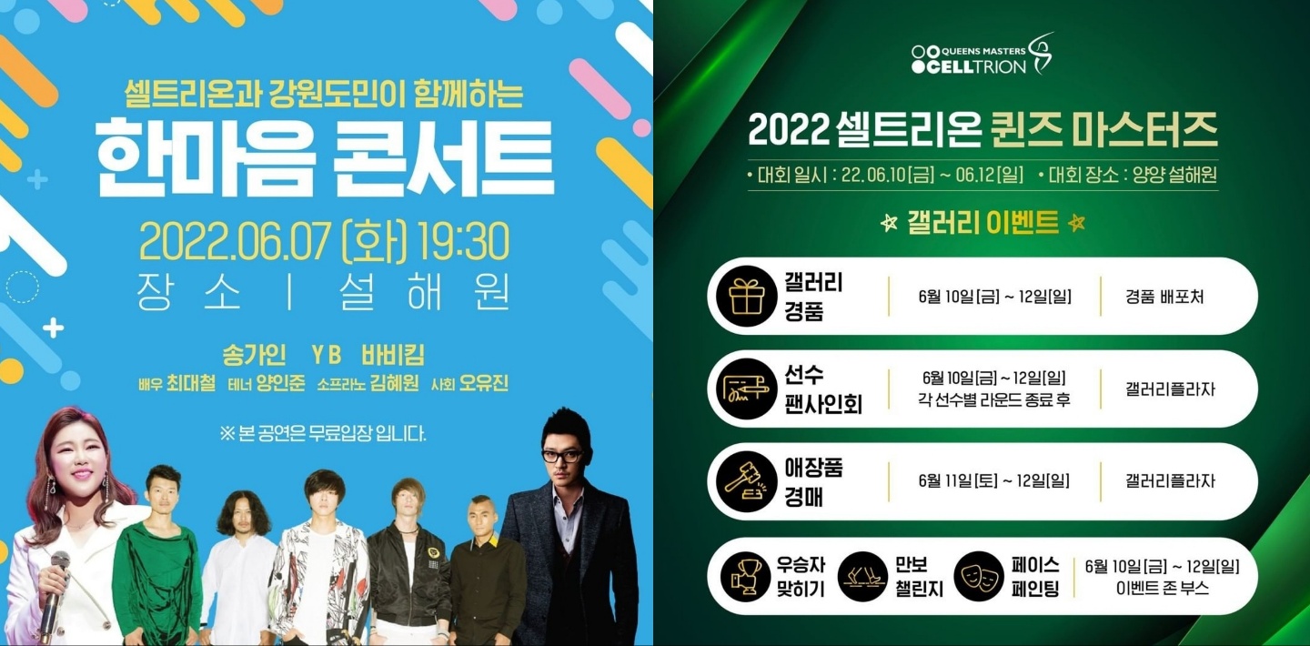 (1) 대회 개최에 앞서 셀트리온과 강원도민이 함께하는 '한마음 콘서트'를 설해원에서 개최한다. 콘서트는 6월 7일(화) 저녁 7시 30분에 진행되는데 인기 가수 송가인과 YB, 바비킴 등이 출연한다. 공연은 무료로 개방된다.