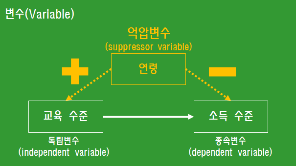 변수는 각각의 기능에 따라 독립, 종속, 매개, 외생, 억압 변수 등으로 구분하는데, 통계나 컴퓨터 관련 자격시험 문제로 자주 출제되는 부분으로 개념 정립이 필요하다. 아주 쉽게 예시를 통해 각 변수의 종류와 의미에 대한 이해를 돕는다.